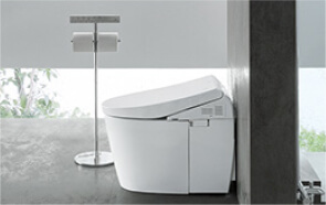 流すたび泡と水流で綺麗にお掃除を楽にしました。速暖便座、温風乾燥、ナノイー、LED照明など多くの機能がついた商品をお選びいただきました。将来足腰が弱くなったときに備えて手すりを設置しました。